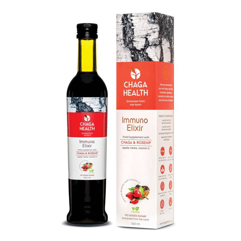 Экстракт черного гриба 60%, пюре из шиповника 38,2%, яблочный концентрат 12%, экстракт ростков сосны, экстракт тысячелистника, витамин C 200 мг / 50 мл (235%).